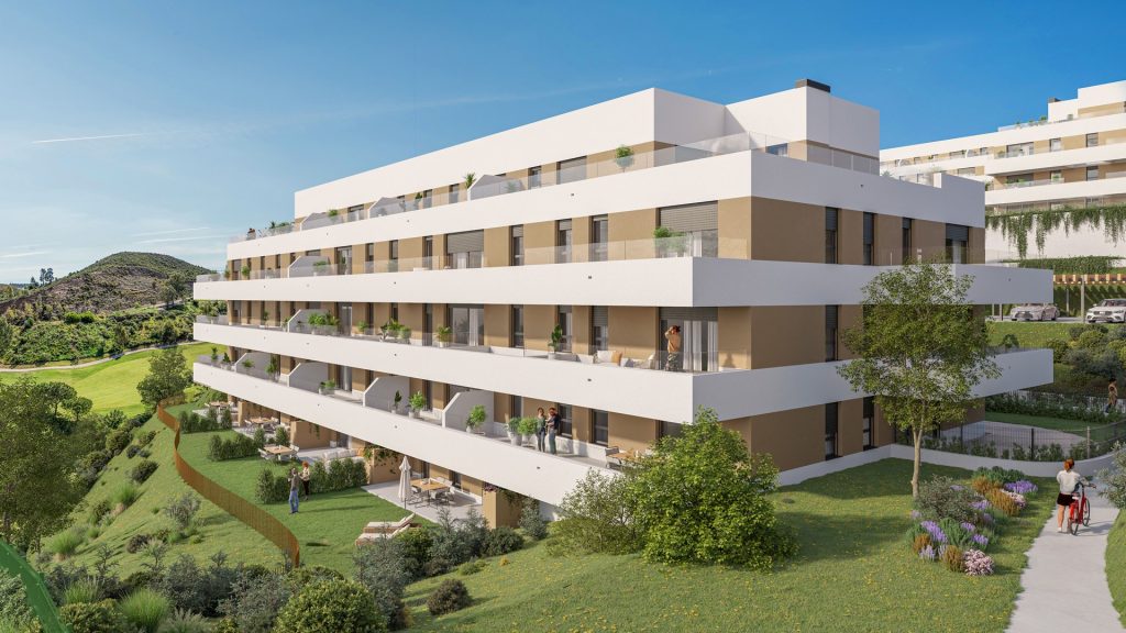 New Development: Prices from 341,000 € to 640,000 €. [Beds: 1 - 3] [Baths: 1 - 2] [Built size: 52.00 m2 - 117.00 m2] This is an impressive new development located in Calanova Golf, Mijas Costa, Malaga. This luxury project, with the exclusivity of being the only agency offering it, offers a variety of housing options, including ground floor apartments, apartments, and penthouses. One of the standout features of this development is its frontline golf location, providing residents with stunning golf course views. Additionally, the gated community ensures the privacy and security of residents. This development also boasts a wide range of amenities for residents to enjoy. A social club provides a place to socialize and relax, while a fully equipped gym offers the opportunity to stay fit. Residents can also enjoy an outdoor swimming pool, perfect for cooling off on hot days. As for the property features, all are designed with excellent quality and offer a variety of orientations to make the most of natural light and panoramic views. Each property has an underground parking space, and there are also on-street parking options. Additionally, an elevator is available for easy access to all floors. In summary, this project is a new development that offers a luxurious lifestyle in a peaceful and exclusive setting. With its frontline golf location, extensive amenities, and excellent property features, this development is the perfect choice for those seeking high-quality housing in Mijas Costa.
