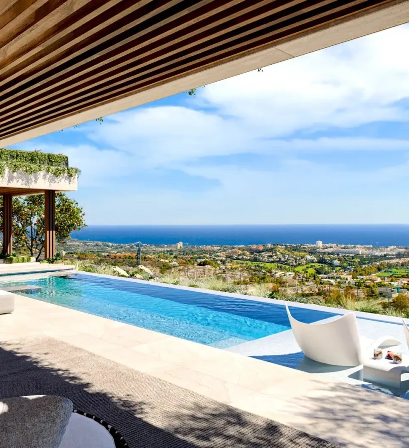 New Development: Prices from 1,495,000 € to 4,950,000 €. [Beds: 2 - 5] [Baths: 2 - 5] [Built size: 129.00 m2 - 402.00 m2] Situated atop of La Quinta in Benahavis, on the southern edge of El Madronal, the project was designed according to the highest level of luxury living trends, as an endless dialogue between home, the sky and the sea. Unique panoramic sea and mountain views Gated community with 24h security World-class amenities Top of the line finishes by Gunni & Trentino 16 luxury villas of approx 869 m2 interior built, 1,048 m2 plot, 5-6 bedrooms 50 high-end apartments: 2, 3 and 4 bedrooms, duplex ground floor, middle floor and duplex penthouses, from 130 to 473 m2 interior build + large terraces. Each unit has its own individual pool! Already under construction These residences offer contemporary open-plan layouts with 2, 3, and 4 bedrooms, showcasing exceptional quality and striking finishes throughout. The property complex boasts a generous swimming pool surrounded by lush gardens, as well as state-of-the-art communal areas and amenities. The impressive architectural and interior decoration designed homes will sit within a secure, gated complex, at the highest point of the urbanization, a quiet spot surrounded by nature and offering panoramic views to the bay of Marbella and the Mediterranean Sea at only ten minutes of Puerto Banus. The stunning properties feature beautifully designed open living and dining spaces, along with a fully equipped kitchen featuring top-tier appliances. The master bedroom exudes elegance and generosity, while the family bedrooms provide ample living spaces. The bathrooms showcase modern sophistication. Furthermore, a spacious terrace with a pool and two parking spaces in the communal garage complement the allure of these amazing homes. The project offers an exceptional combination of prime location, impeccable finishes, unparalleled sea views, a delightful outdoor pool, and an inviting ambiance, all complemented by designer amenities to embrace a unique quality of life.