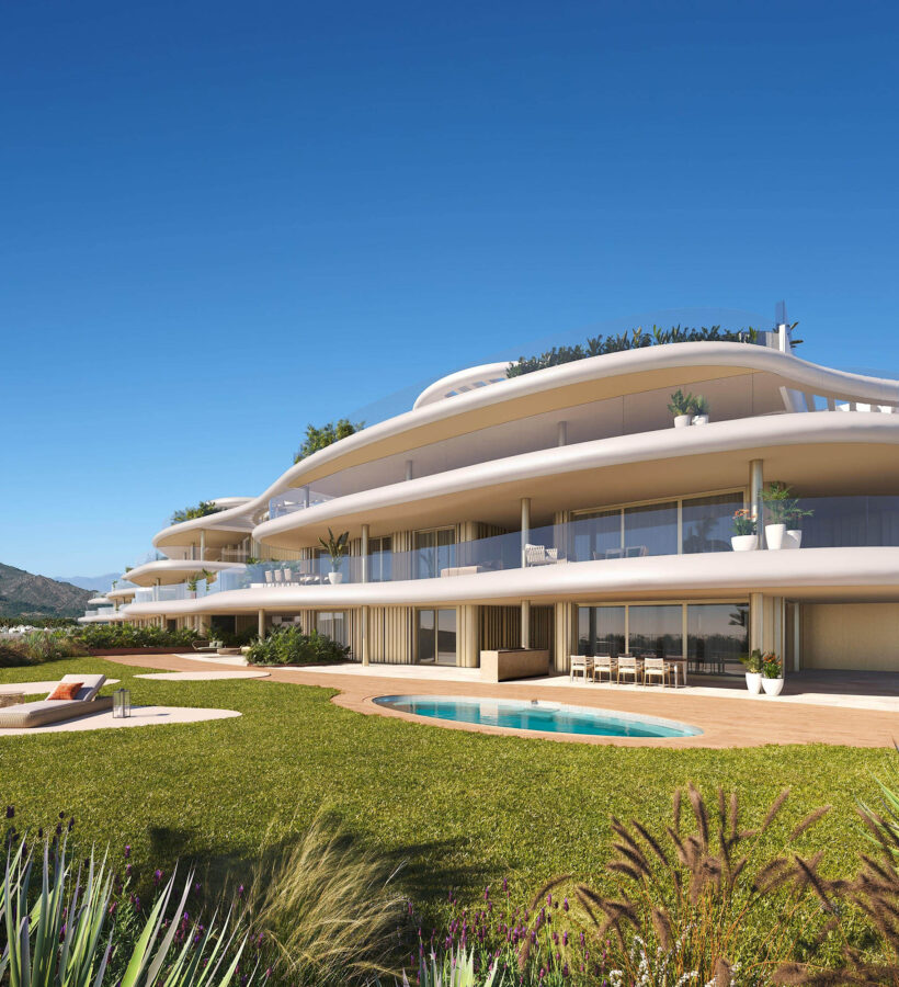 New Development: Prices from 5,995,000 € to 8,995,000 €. [Beds: 5 - 6] [Baths: 5 - 6] [Built size: 811.00 m2 - 937.00 m2] Situated atop of La Quinta in Benahavis, on the southern edge of El Madronal, the project was designed according to the highest level of luxury living trends, as an endless dialogue between home, the sky and the sea. Unique panoramic sea and mountain views Gated community with 24h security World-class amenities Top of the line finishes by Gunni & Trentino 16 luxury villas of approx 869 m2 interior built, 1,048 m2 plot, 5-6 bedrooms 50 high-end apartments: 2, 3 and 4 bedrooms, duplex ground floor, middle floor and duplex penthouses, from 130 to 473 m2 interior build + large terraces. Each unit has its own individual pool! Already under construction These residences offer contemporary open-plan layouts with 2, 3, and 4 bedrooms, showcasing exceptional quality and striking finishes throughout. The property complex boasts a generous swimming pool surrounded by lush gardens, as well as state-of-the-art communal areas and amenities. The impressive architectural and interior decoration designed homes will sit within a secure, gated complex, at the highest point of the urbanization, a quiet spot surrounded by nature and offering panoramic views to the bay of Marbella and the Mediterranean Sea at only ten minutes of Puerto Banus. The stunning properties feature beautifully designed open living and dining spaces, along with a fully equipped kitchen featuring top-tier appliances. The master bedroom exudes elegance and generosity, while the family bedrooms provide ample living spaces. The bathrooms showcase modern sophistication. Furthermore, a spacious terrace with a pool and two parking spaces in the communal garage complement the allure of these amazing homes. The project offers an exceptional combination of prime location, impeccable finishes, unparalleled sea views, a delightful outdoor pool, and an inviting ambiance, all complemented by designer amenities to embrace a unique quality of life.