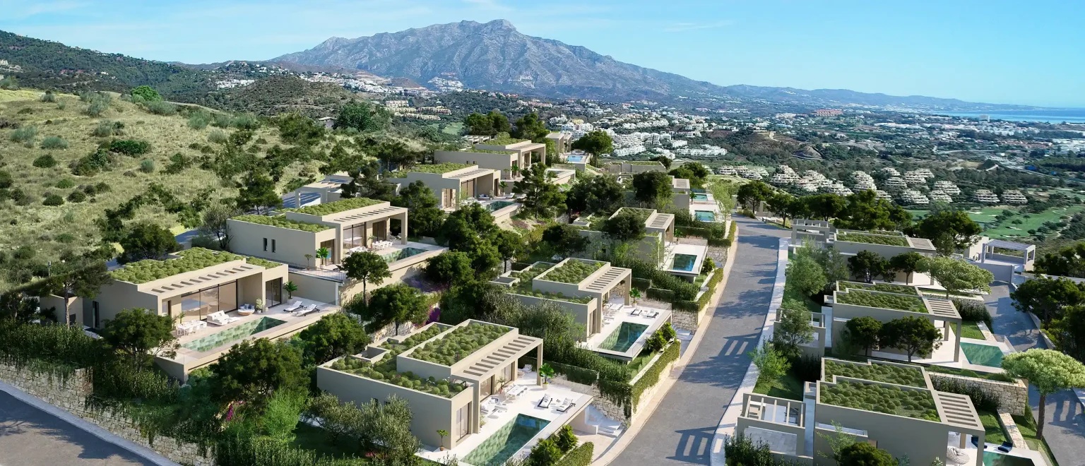 New Development: Prices from 2,000,000 € to 2,750,000 €. [Beds: 3 - 5] [Baths: 2 - 4] [Built size: 160.00 m2 - 371.00 m2] This residential is a gated, villa community nestled in the hills located in lower Benahavis. Sitting within a triangle between Marbella, Estepona and the mountain village of Benahavis this unique development offers tranquility, stunning panoramic views and embraces the natural organic environment. A unique project that offers a "lock and leave" villa concept with a community fee including 24 hour security, maintenance of the stunning grounds that house an abundance of Olive trees, exclusive use of the Club House including heated indoor pool, full equipped gym, office space and Sauna, and full maintenance of your private garden and pool. Launched in 2021 the contemporary designed villas embrace the natural elements, designed to maximise the stunning views and with 7 villa designs to suit all needs, this development continues to be in high demand. Built to the high standard, these villas blend contemporary open plan designed properties with seamless living enabling full enjoyment of the natural surrounds and stunning views offered. This brand-new development, consists of modern and contemporary properties with organic and natural elements in keeping with the surroundings. Each villa comes with a verdant Mediterranean garden and a private pool. The development is located in the heart of Benahavís, only a few minutes away from Marbella and Estepona. It is one of the most exciting luxury residential project in many years. All villas comes with a well-designed and open-plan concept including high ceilings and windows that allows the light to flood into the home.