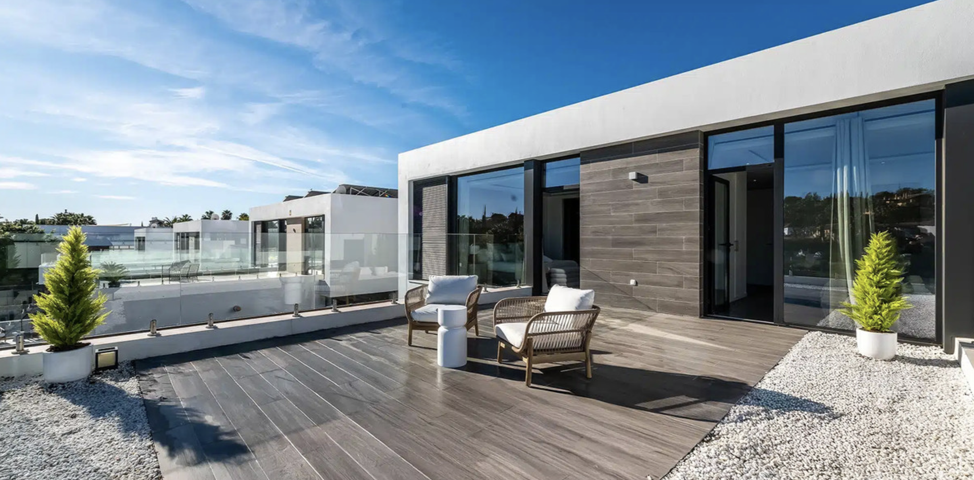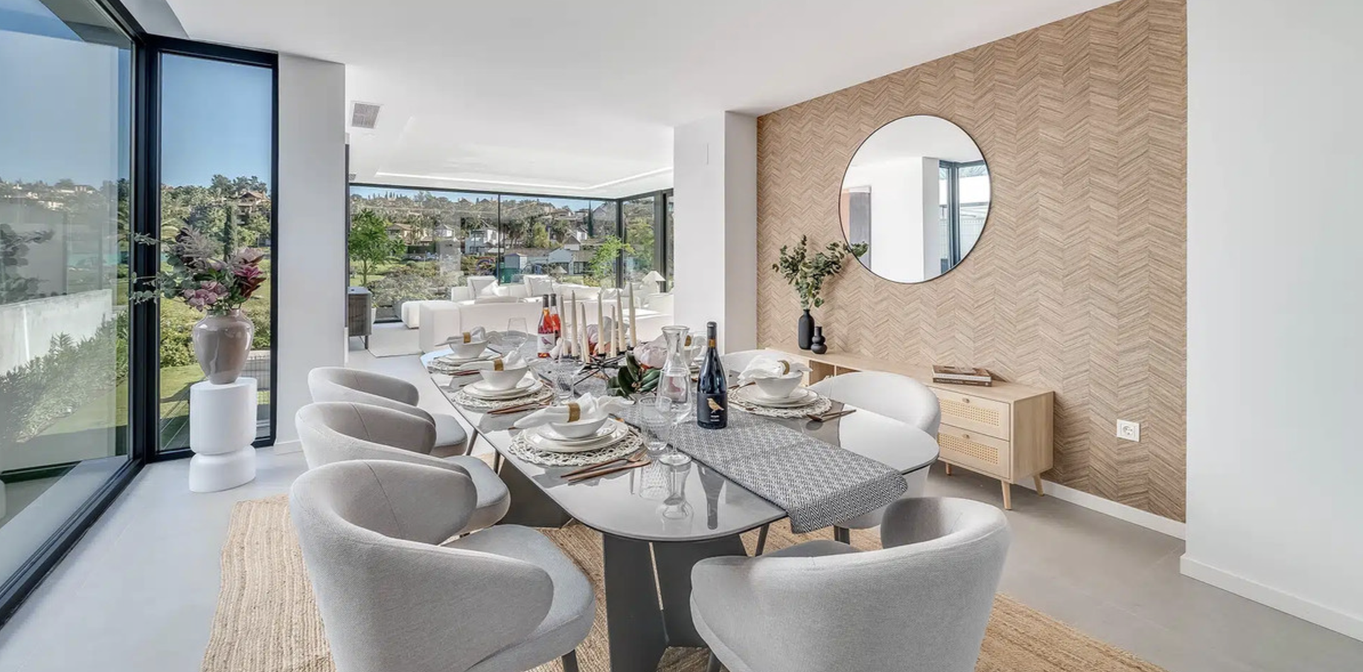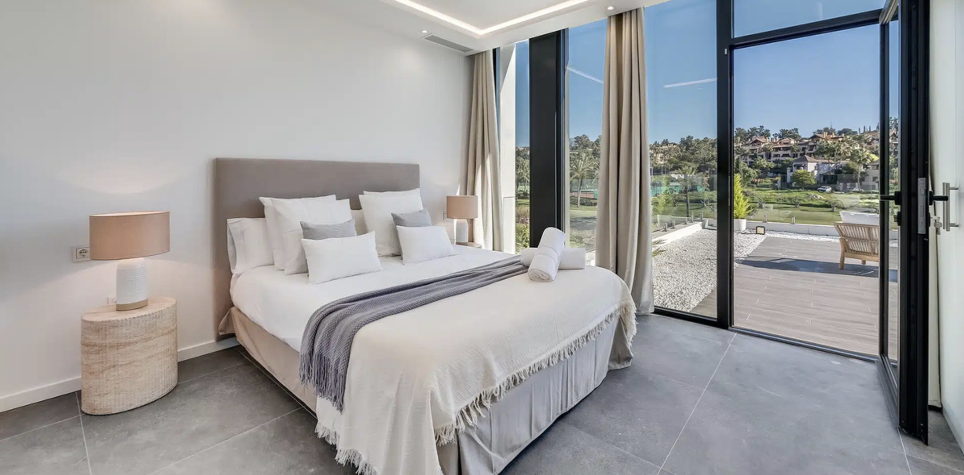 Modern Frontline Golf Villa with Infinity Pool Villa Chic is a brand new, Scandinavian-inspired home set front line to El Campanario Golf. Just minutes from Puerto Banús, the beach, and top golf courses, this modern villa offers five spacious bedrooms, four en suite bathrooms, and a guest toilet. The open plan living area leads directly to a landscaped garden, a heated infinity pool, and an outdoor dining area with a built- in BBQ. Designed for comfort and style, Villa Chic features two master suites with private terraces and walk-in wardrobes. The lower level is made for entertaining with a private cinema, games area, gym, and extra bedrooms for guests. Every detail has been created for easy living and relaxed luxury. Set on a 518 m² plot with a private garage and panoramic golf views, Villa Chic offers a calm retreat close to everything. With year-round sunshine and easy access to Marbella and Estepona, this villa is perfect for those seeking modern design, prime location, and a high-end lifestyle on the Costa del Sol.