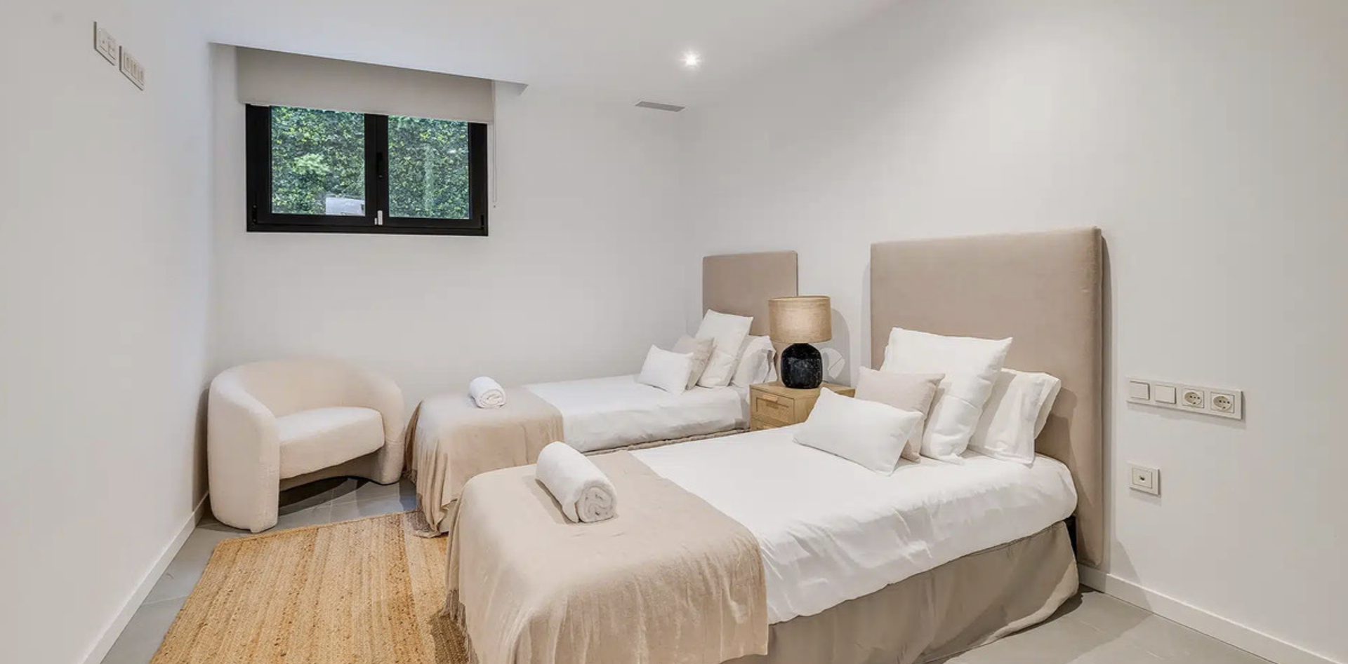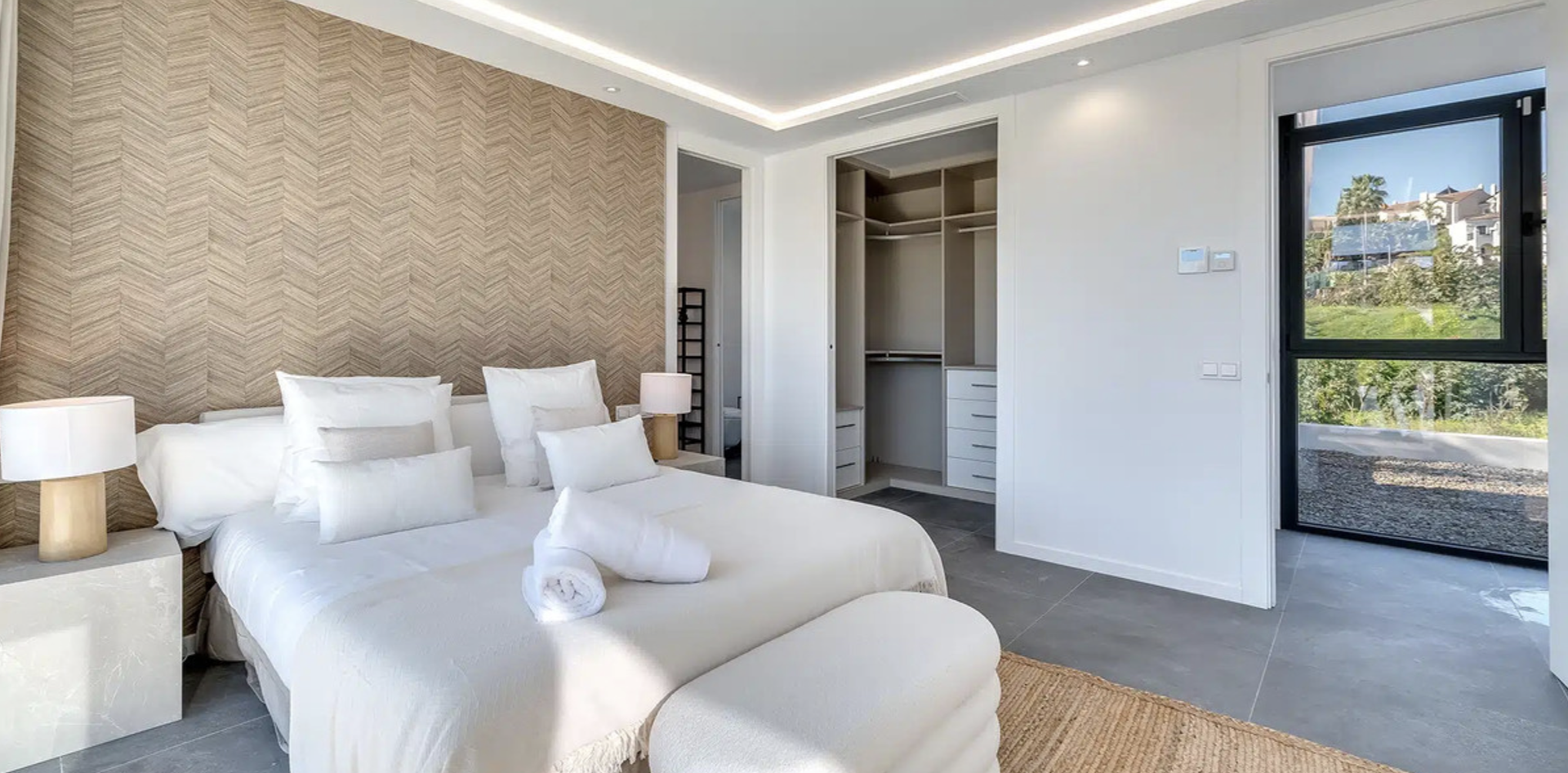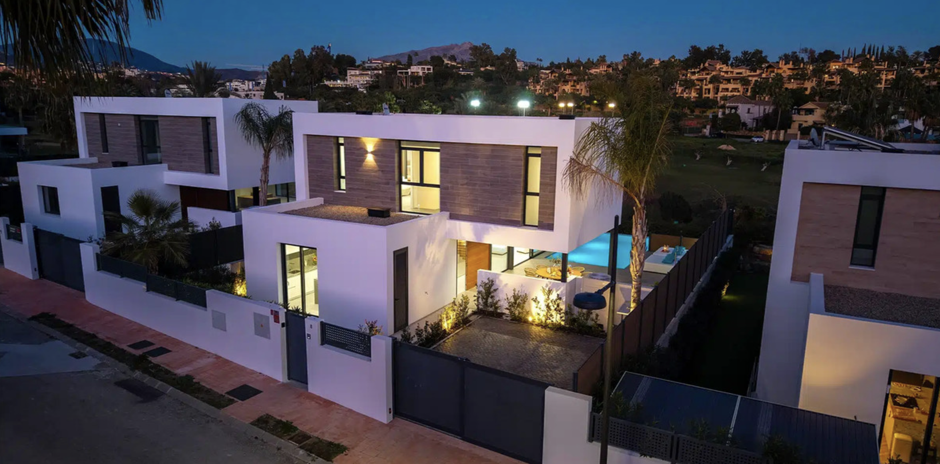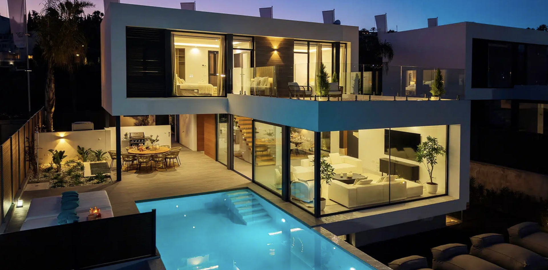 Modern Frontline Golf Villa with Infinity Pool Villa Chic is a brand new, Scandinavian-inspired home set front line to El Campanario Golf. Just minutes from Puerto Banús, the beach, and top golf courses, this modern villa offers five spacious bedrooms, four en suite bathrooms, and a guest toilet. The open plan living area leads directly to a landscaped garden, a heated infinity pool, and an outdoor dining area with a built- in BBQ. Designed for comfort and style, Villa Chic features two master suites with private terraces and walk-in wardrobes. The lower level is made for entertaining with a private cinema, games area, gym, and extra bedrooms for guests. Every detail has been created for easy living and relaxed luxury. Set on a 518 m² plot with a private garage and panoramic golf views, Villa Chic offers a calm retreat close to everything. With year-round sunshine and easy access to Marbella and Estepona, this villa is perfect for those seeking modern design, prime location, and a high-end lifestyle on the Costa del Sol.