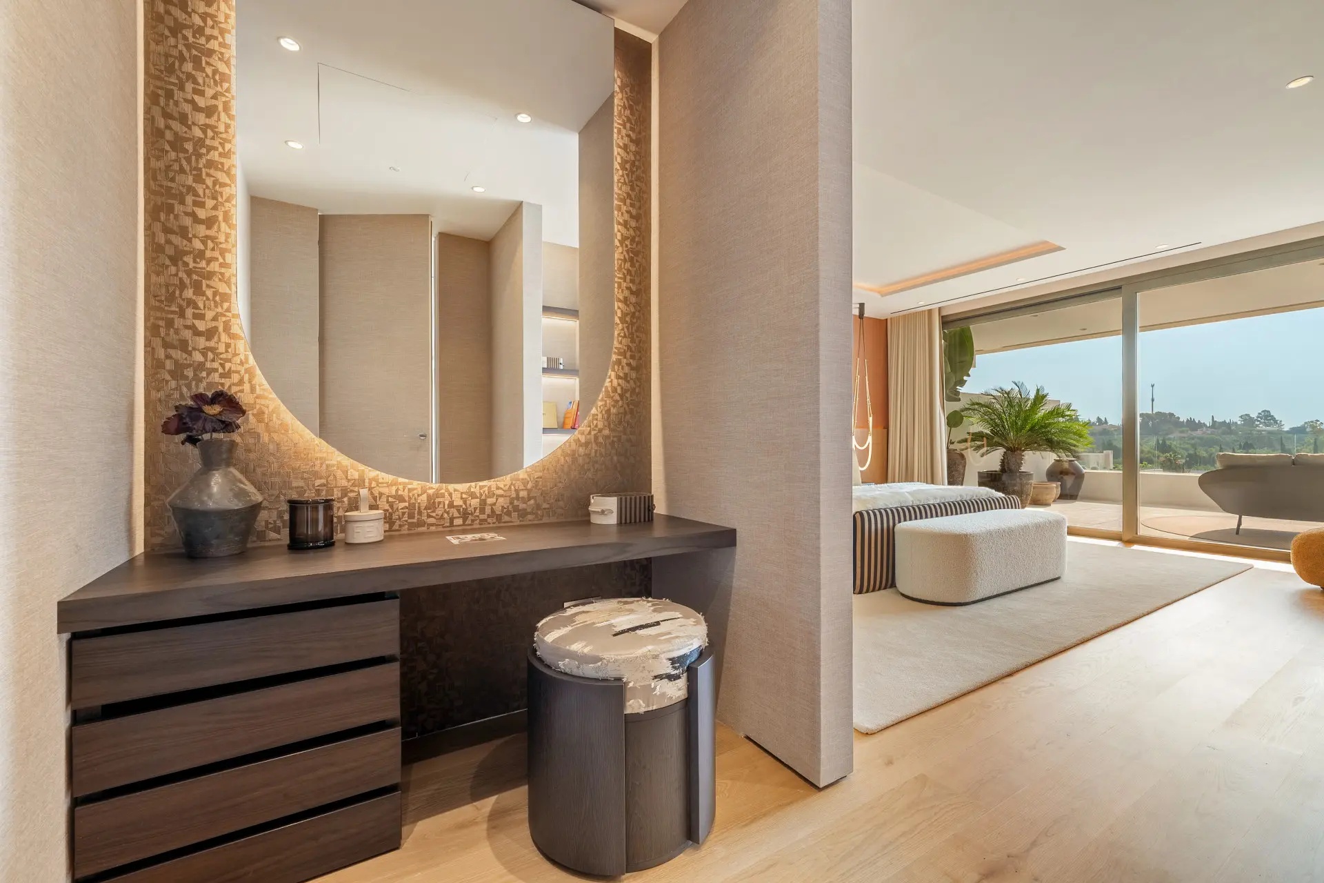 Esta lujosa residencia captura al instante la esencia del verdadero lujo, comenzando por un impresionante vestíbulo de entrada que marca la pauta de la grandiosidad del interior. La amplia sala de estar, que destaca por su excepcional tamaño, evoca una sensación de espacio infinito y libertad. En toda la propiedad, los grandes suelos de mármol realzan la sensación de elegancia, mientras que la cocina, magistralmente diseñada y amueblada por Fendi Casa, es un ejemplo de artesanía refinada. La carpintería de alta calidad y las amplias vistas panorámicas desde las terrazas y el solárium de la planta principal elevan aún más la experiencia de vivir en ella. En la planta superior, una piscina privada ofrece un oasis personal, complementado con la opción de instalar un bar o una barbacoa para disfrutar del máximo ocio y entretenimiento. Esta residencia es, sin duda, una obra maestra del lujo contemporáneo.