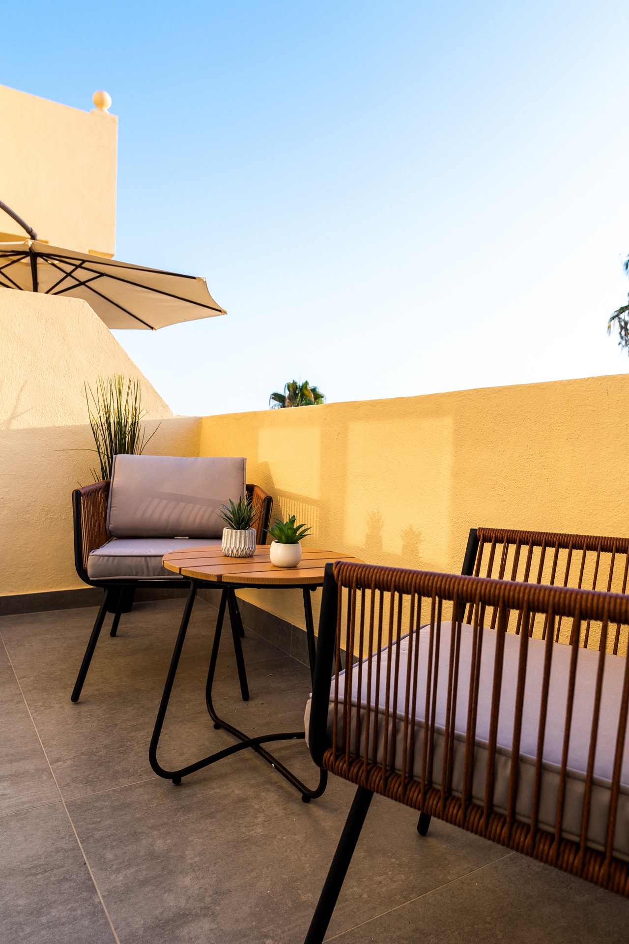Descubra lo último en lujo con este exquisito apartamento ubicado en la hermosa La Quinta Hills, Benahavís, Málaga. Con 3 amplios dormitorios, cada uno con baño en suite, esta propiedad garantiza amplio espacio y comodidad para una experiencia de vida excepcional. Características de la propiedad: Amplias zonas de estar: Con una superficie total construida de 142 m², este apartamento cuenta con un luminoso y elegante salón, perfecto para relajarse o recibir invitados. El aire acondicionado garantiza comodidad durante todo el año, sin importar la temporada. Cocina moderna: La cocina, totalmente equipada con electrodomésticos de última generación, cuenta con un práctico comedor, ideal para amantes de la cocina y reuniones familiares. Terraza privada: Una de las características más destacadas de este apartamento es su terraza privada, que ofrece impresionantes vistas a la montaña y es un lugar perfecto para disfrutar del sol. Además, la propiedad incluye un solárium y una terraza en la azotea, que ofrecen espacios exteriores adicionales para relajarse y disfrutar del pintoresco entorno. Servicios de lujo: Ubicado en un prestigioso resort de golf, este apartamento es perfecto para los amantes del golf, ya que está cerca de campos de golf de clase mundial. La piscina comunitaria y el jardín se mantienen meticulosamente, ofreciendo un ambiente sereno para relajarse. Acabados de alta calidad: Recientemente renovado, este apartamento cuenta con acabados de alta calidad, incluyendo suelos de porcelanato, armarios empotrados, puertas de cristal y una cocina americana. La suite principal incluye un vestidor, lo que añade un toque de lujo y comodidad.
