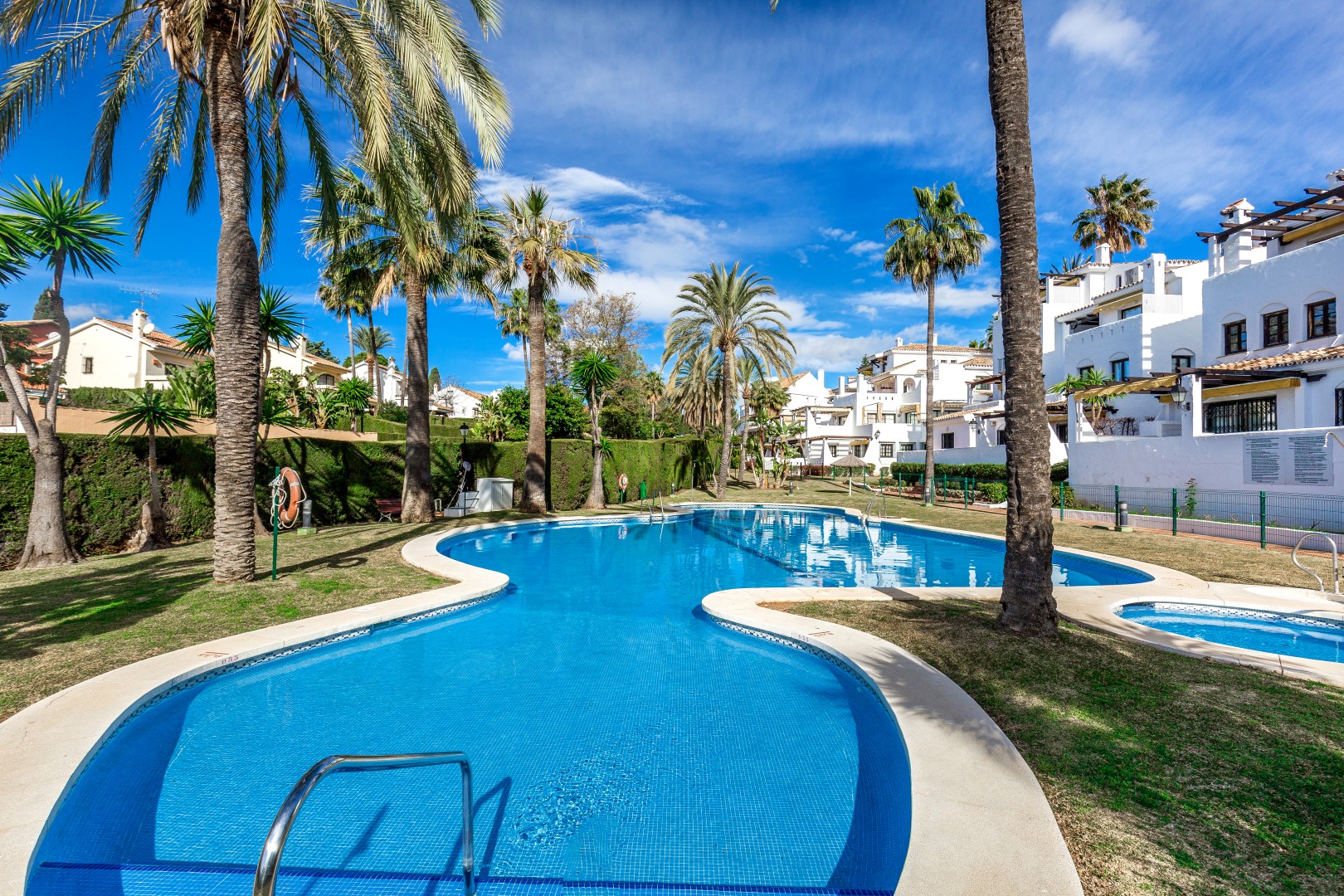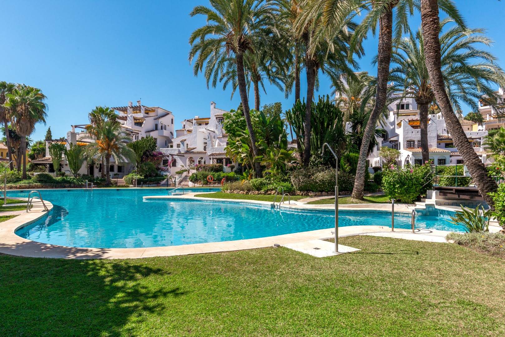 Aldea Blanca is one of the most desirable residential communities in Nueva Andalucía, celebrated for its classic Andalusian charm, prime location, and vibrant Mediterranean lifestyle. This well-established gated development blends traditional whitewashed architecture with lush tropical gardens, multiple swimming pools, and a laid-back yet elegant atmosphere.