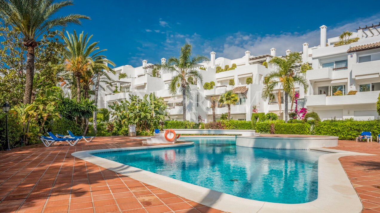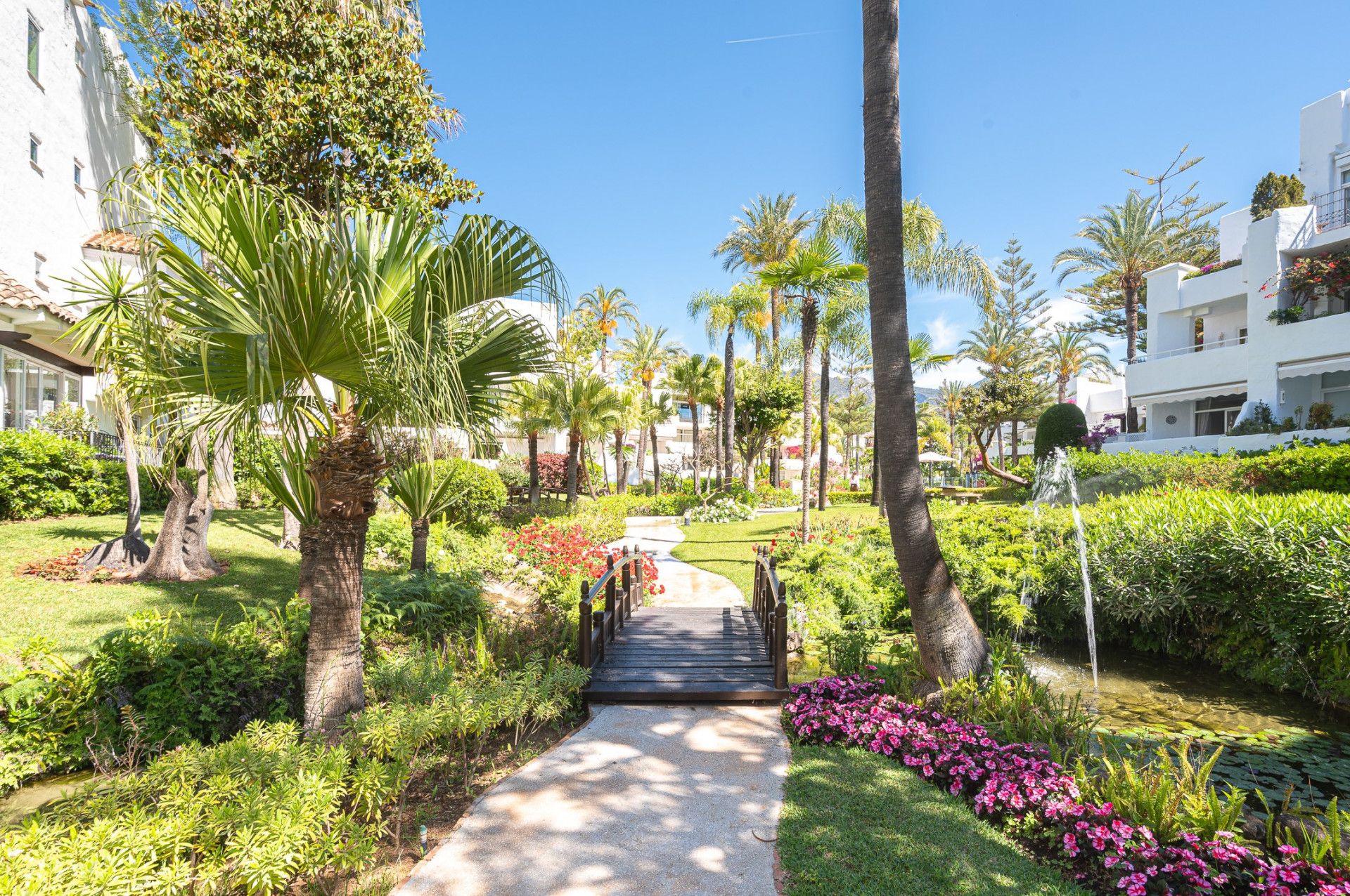 Alhambra del Mar is one of Marbella’s most charming and well-located beachfront communities, nestled along the prestigious Golden Mile and just a short walk from the heart of the city. Known for its lush tropical gardens, direct beach access, and Andalusian-inspired architecture, it offers a peaceful, private environment that appeals to those seeking both comfort and convenience.