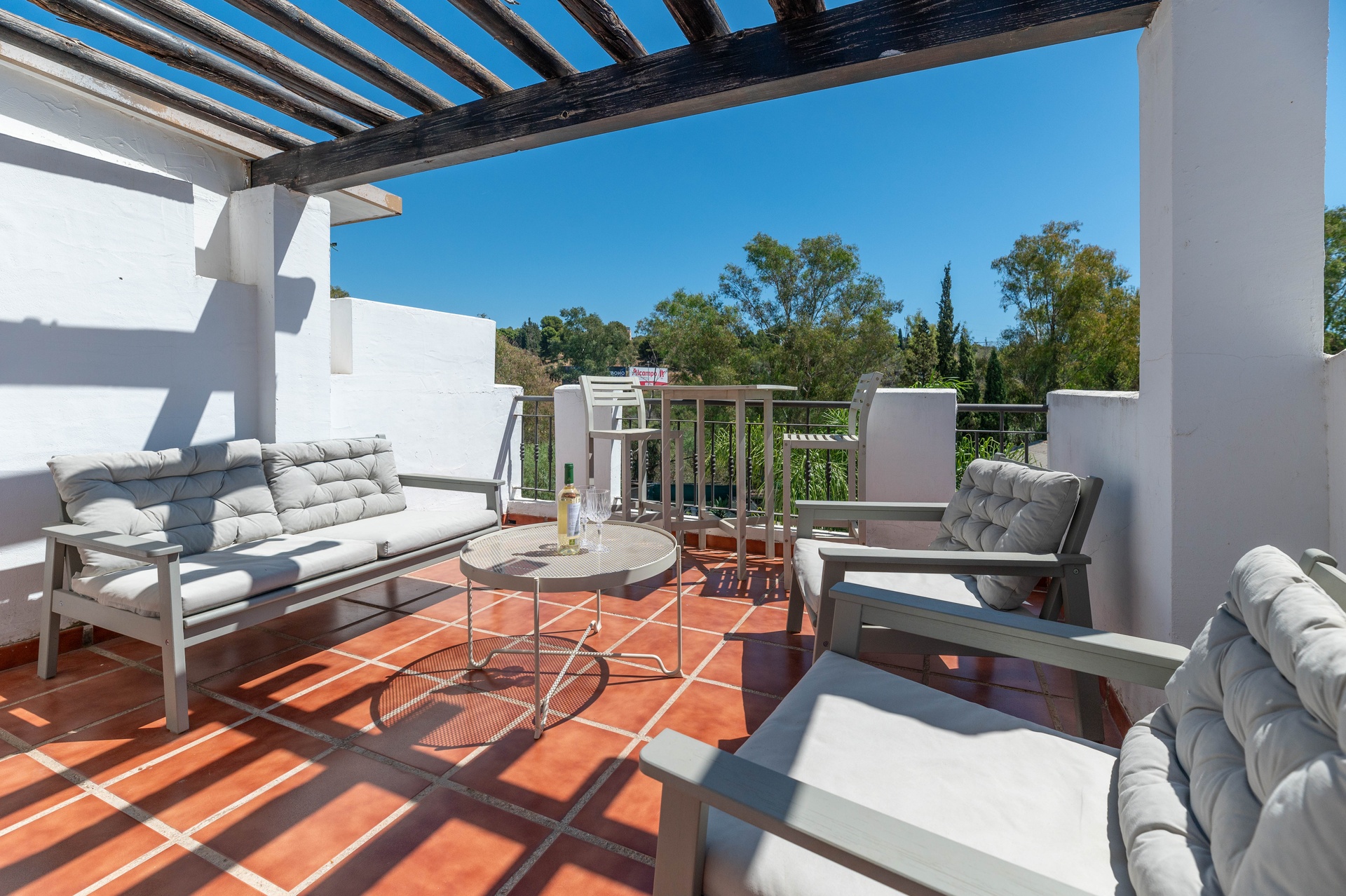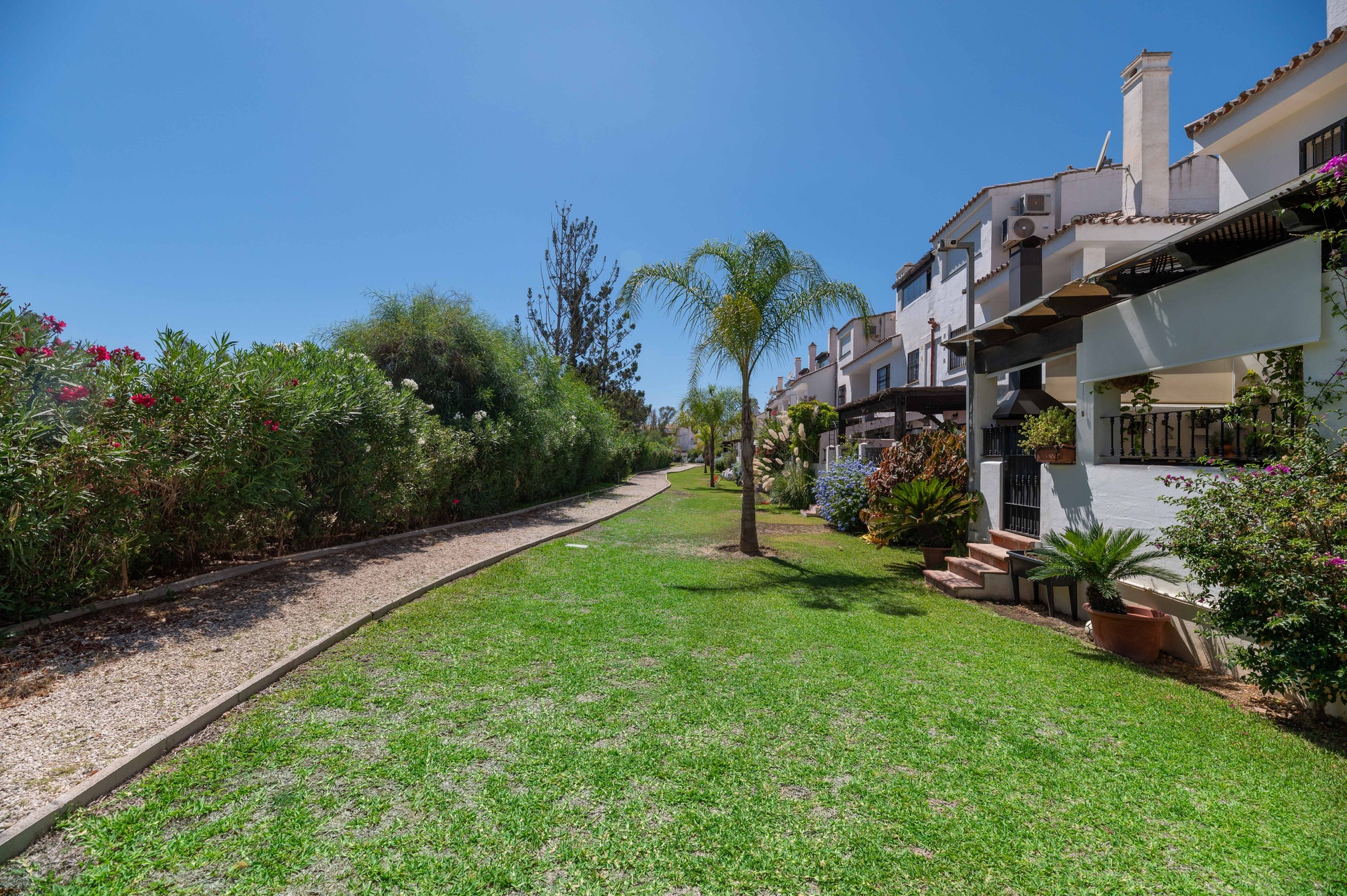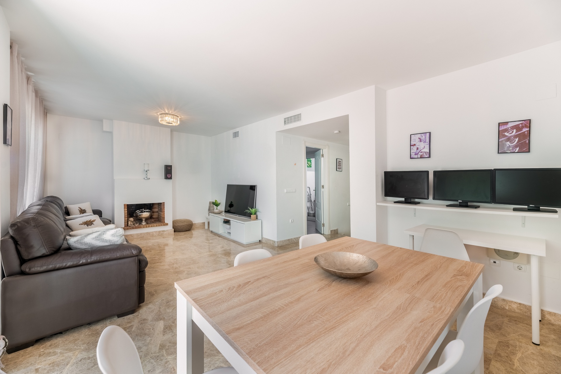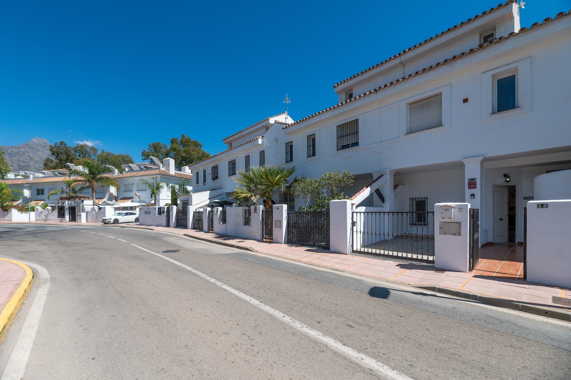 Ta urocza kamienica z 3 sypialniami, idealna do długoterminowego wynajmu, znajduje się w fantastycznej okolicy, w odległości spaceru od słynnego Puerto Banús. Po wejściu na parterze wita nas ciepły i zachęcający salon, który płynnie łączy komfort ze stylem. Przestronny obszar jest wypełniony naturalnym światłem dzięki dużym szklanym drzwiom, które otwierają się bezpośrednio na taras i podwórko idealne do relaksu, które prowadzi bezpośrednio do dobrze utrzymanego wspólnego ogrodu i orzeźwiającego basenu, zapewniając spokojny wypoczynek na świeżym powietrzu. W miesiącach zimowych można przytulić się przy uroczym kominku w salonie, dzięki czemu jest to idealne miejsce na relaks i oglądanie ulubionych programów. Do części dziennej przylega jadalnia, która wygodnie pomieści sześć osób, idealna do przyjmowania gości lub delektowania się rodzinnymi posiłkami. Kuchnia jest w pełni wyposażona i obejmuje wygodną pralnię, która zaspokoi wszystkie Twoje potrzeby. Główna sypialnia ma mały balkon z pięknym widokiem na góry, dzięki czemu jest to przyjemne miejsce na spokojny poranek. Na piętrze znajduje się przestronne solarium, idealne do swobodnego grillowania i relaksu wieczorami. Jeśli chodzi o lokalizację, znajduje się zaledwie 200 metrów od Mercadony, gdzie można zrobić wszystkie zakupy, a tętniąca życiem dzielnica Puerto Banús znajduje się w odległości krótkiego spaceru, oferując restauracje, butiki i życie nocne. Ta kamienica łączy w sobie komfort, praktyczność i bliskość udogodnień, zapewniając przyjemny długoterminowy pobyt.